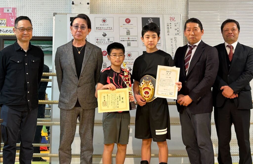 大会の競技態度やジムの稽古姿勢で思いやり・挑む・諦めない心などを軸に審査される『ジュニア駿河賞』に選ばれた“小栗滉太郎”(11歳)への受賞が行われました。