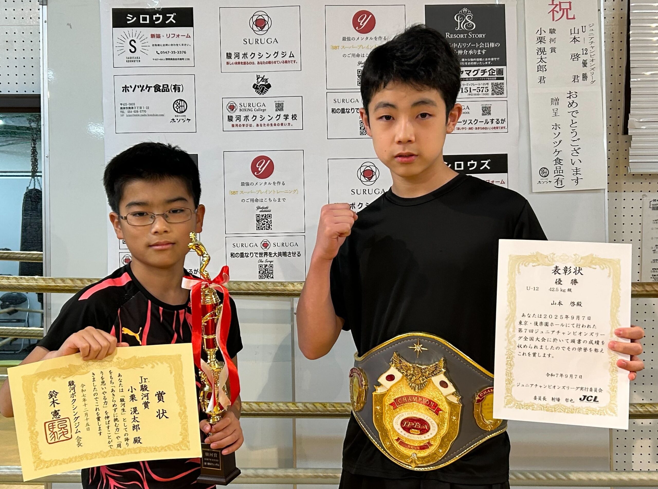 ジュニア・チャンピオンズリーグチャンピオンベルトの贈呈及び駿河賞の受賞が行われました。
