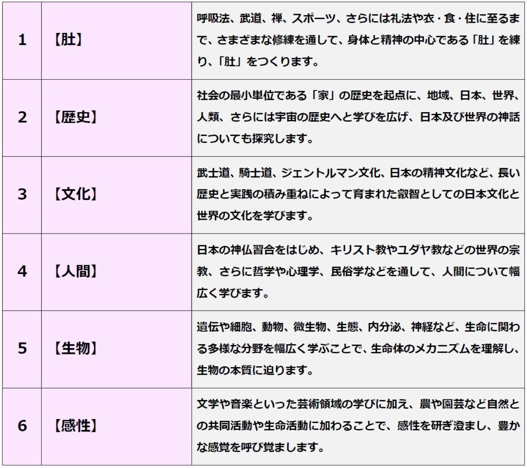 本校では「命を懸けて貫ける信念」を見いだすための特別な6つのプログラムをご用意しています。