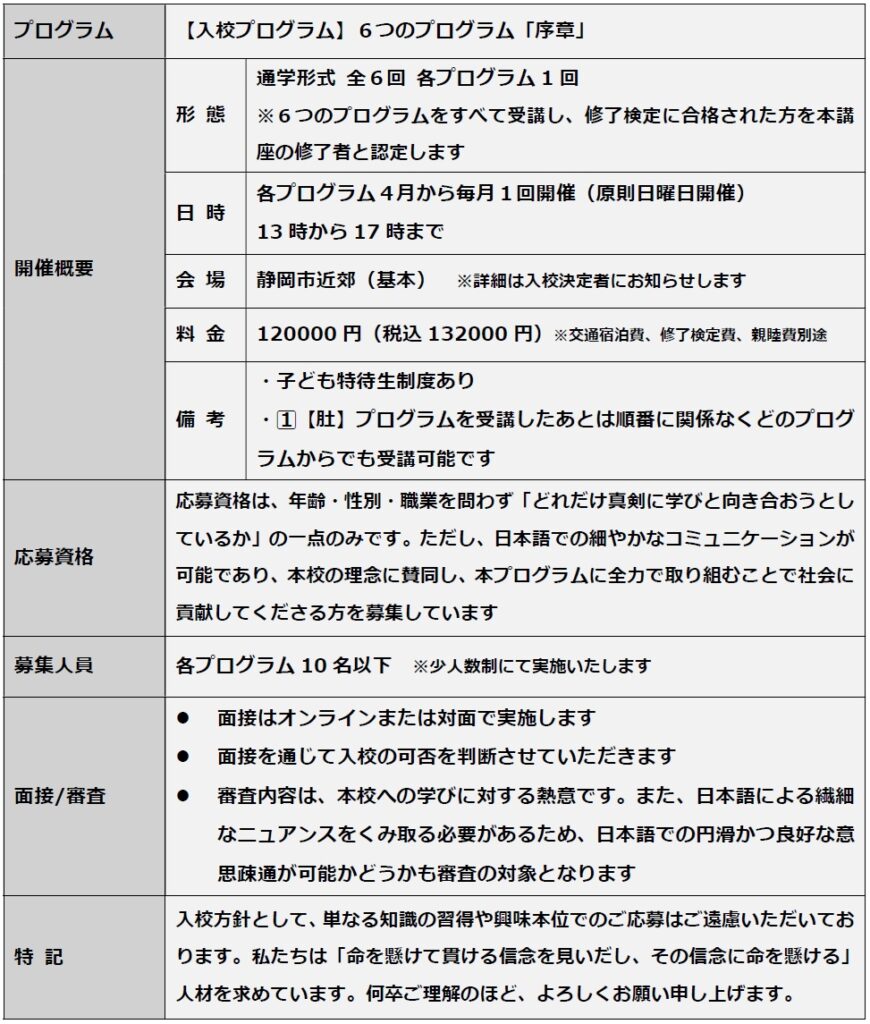 【入校プログラム】 <6つのプログラム「序章」>